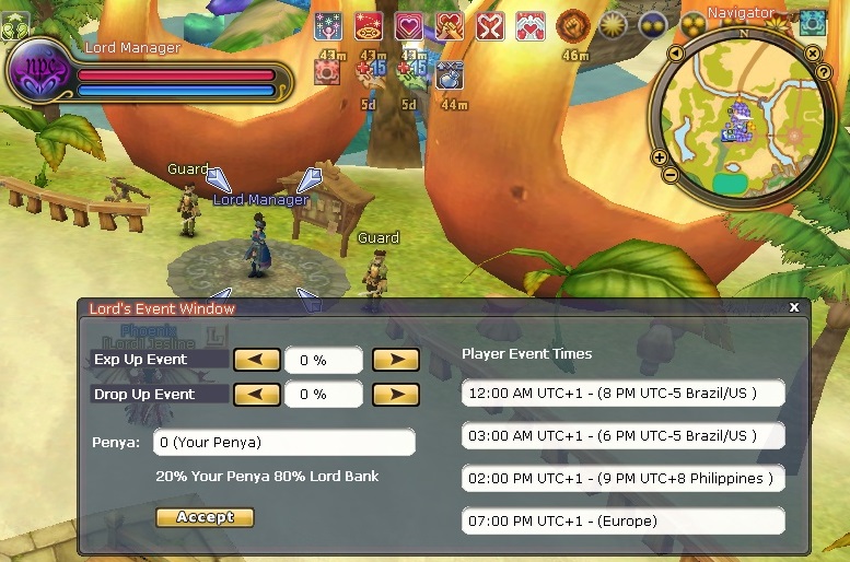 A type of event that both have almost the same power but different advantage to each other. Lord Event where you need to be the "Lord" to trigger a Lord EXP Event. As a Lord, you can trigger an event anytime you want from 5% to 50% EXP Event but also the cost will depend on how much percent you will trigger and you also have a "Lord Skill" that can provide EXP, damage and stats while Player Event is where normal players can trigger a "Lord Event" too but only on fixed times (get the link to player event time below). Player Event will also cost the one who triggers 20% of its own money and 80% from the Lord's Bank while Lord Event costs 100% of Lord's Bank money.